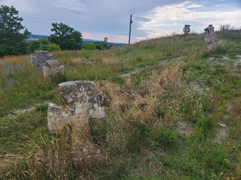 Поява кладовища на горі пояснюється тим, що традиційно Чортів камінь був святилищем, а у 17-18 століттях десь біля нього стояла дерев’яна церква, яка пізніше згоріла. Дехто взагалі вважає, що це звичайне прицерковне парафіяльне кладовище. А от священники із монастиря нам сказали, що тут поховані лицарі, напевне маючи на увазі козаків. Але мусимо зізнатись, що ми точно не знаємо хто лежить у тих могилах. Місцеві мешканці називають цвинтар козацьким, і у нас немає вагомих причин спростовувати їхню думку. Принаймні хрести там точно козацькі.