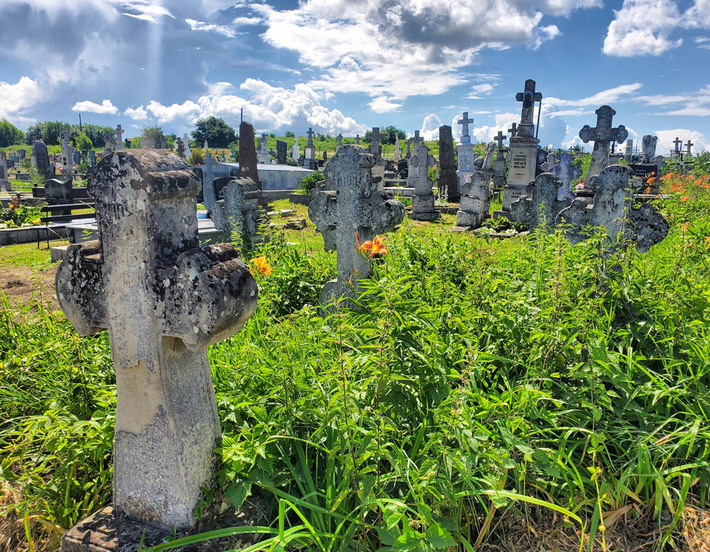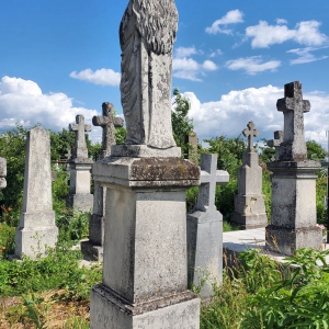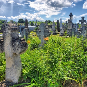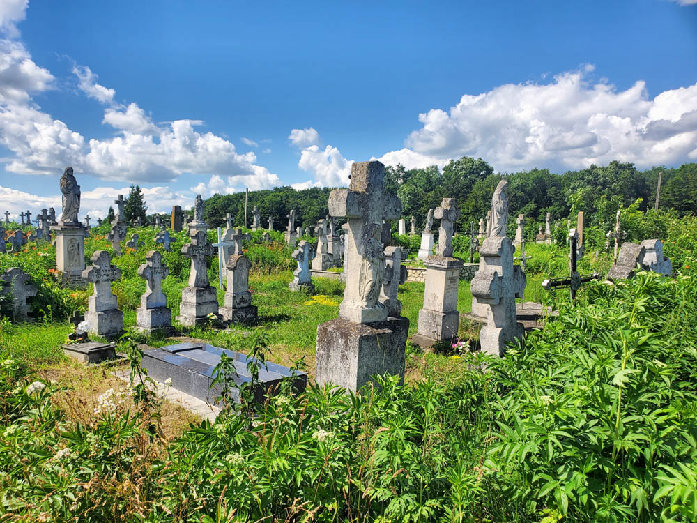 Старовинний цвинтар розташований у мальовничій та дещо містичній місцевості — на схилах гір Медоборів. Він ніби «вписаний» у ландшафт, що створює особливу атмосферу спокою та занедбаної величі. Усі хрести витесані з місцевого вапняку, який з часом покрився мохом та лишайниками, що надає їм вигляду природних скель.
